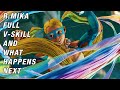 Rainbow Mika pulls out a microphone and gives a sixteen second monologue about training for strength, promising that anyone who follows her instructions will soon be “all muscle”. At the end of each step, she gains extra strength.